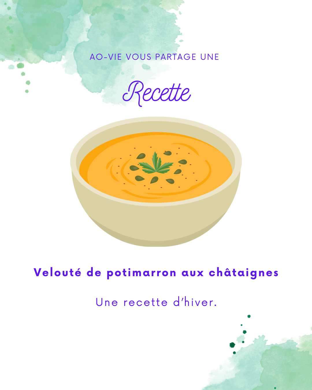 Aujourd’hui, je vous présente une recette d’hiver. C’est un velouté de potimarron aux châtaignes. 🌰