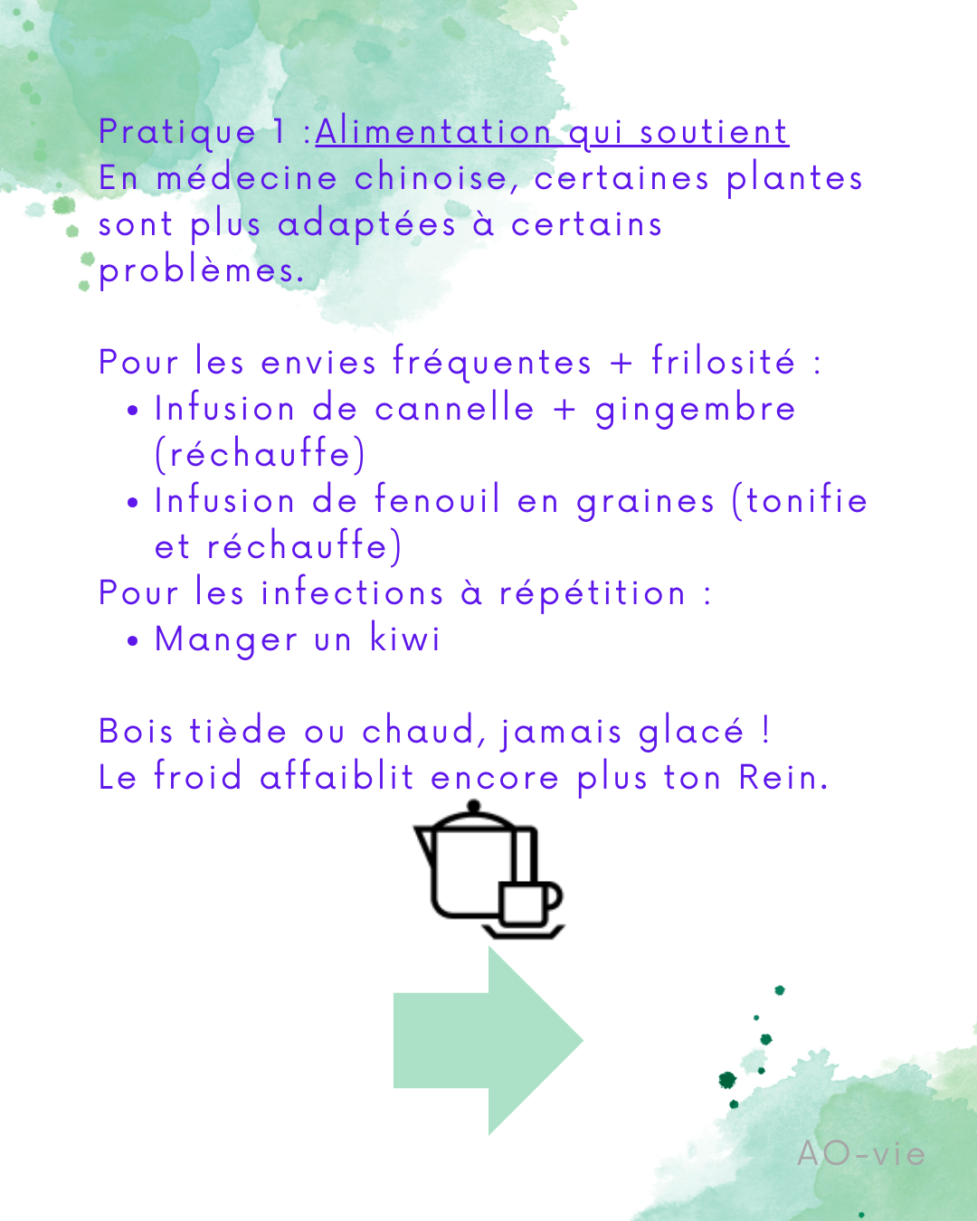 Bois tiède ou chaud, jamais glacé ! Le froid affaiblit encore plus ton Rein. ❄️