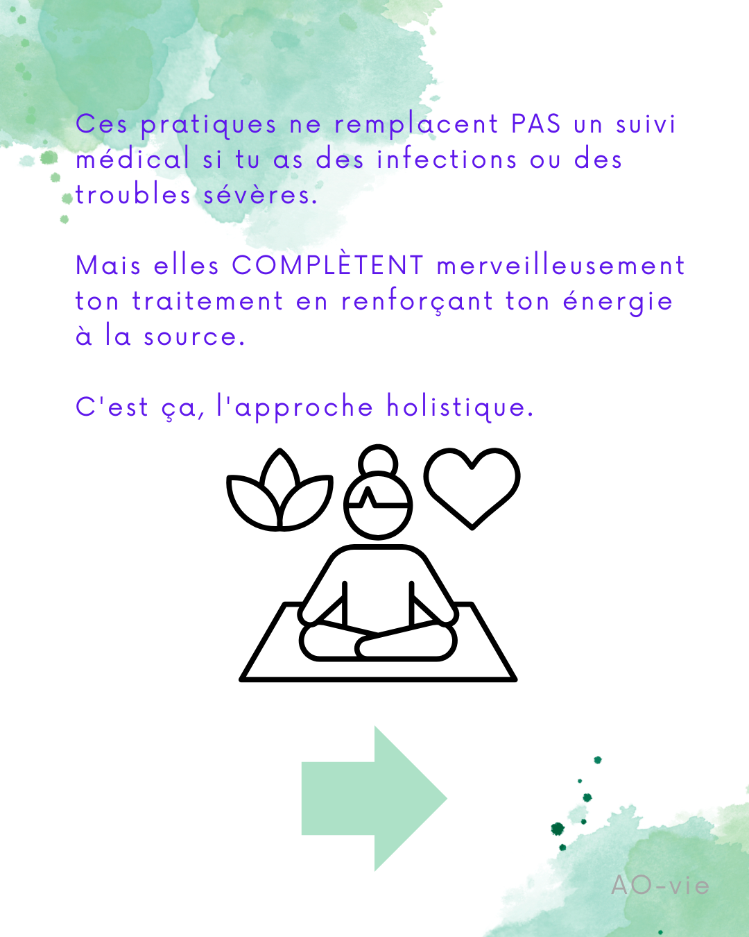 Ces pratiques ne remplacent PAS un suivi médical si tu as des infections ou des troubles sévères.